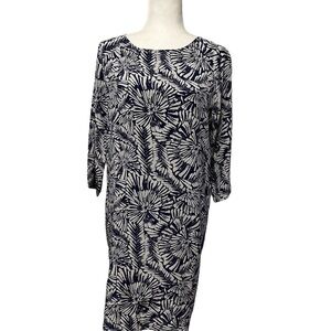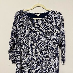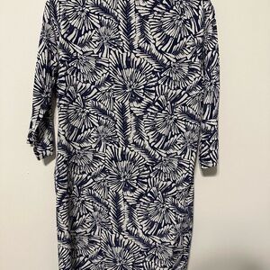 Garnet Hill Navy White Floral Pattern Silk Tunic Dress Size 2