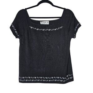 Garnet Hill Size Medium Grey Loose Knit Sweater 100% Cashmere 3/4 Flare Sleeve