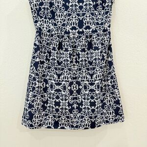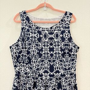 Garnet Hill Sleeveless Cotton Print Dress Navy/White Women’s Size 14 Zipper