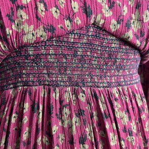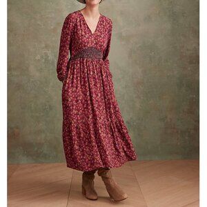 Garnet Hill Smocked-Bodice dress Magenta Blooms print maxi boho cottagecore 10