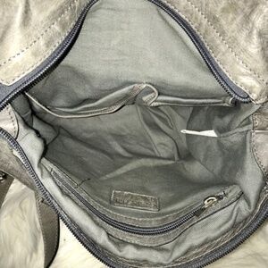 NWOT. NEVER USED. Garnet Hill MADE IN ITALY. TAN distressed leather convertible cross-body/clutch/handle bag. Adjustable and removable leather strap; brushed silver hardware; front flip lifts to reveal large zippered pocket; zippered pocket on back as well. zippered top opens to a fabric-lined large compartment with a large zippered pocket and two small open pockets (one cell-phone-sized and one larger). 14” wide x 14 high open/9.25” high closed