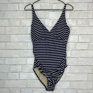 Garnet Hill Stripe Signature Surplice One Piece Swimsuit Maillot 8