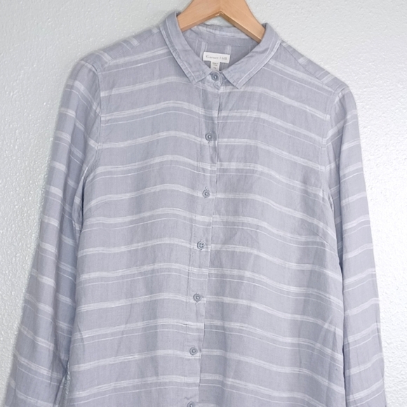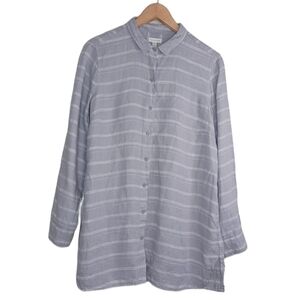 Garnet Hill Striped 100% Linen Button Down Front Contemporary Tunic Top