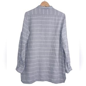 Garnet Hill Striped 100% Linen Button Down Front Contemporary Tunic Top.