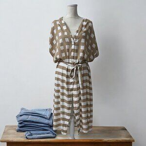 Garnet Hill Striped & Checkered Long Kimono Swim Cover Up With Belt