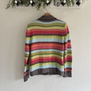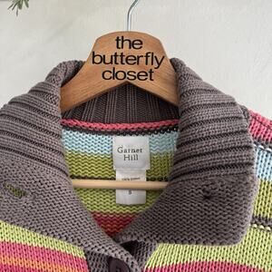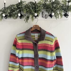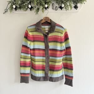 Garnet Hill Striped Multicolor Knit Button Down Sweater Cotton Small Q4885