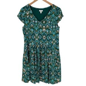 Garnet Hill Summer Day Shift Dress Short Sleeve Pockets Above Knee Women 6 Green
