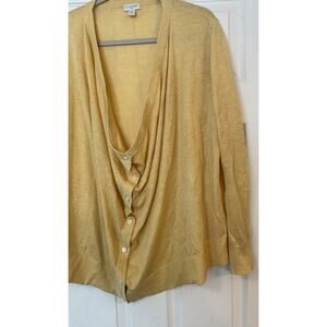 Garnet Hill Sweater Easy Linen Drape Front Cardigan Womens MED Mustard Yellow