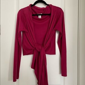 Garnet Hill Sweater|Cardigan Open Front Wrap Tie at Waist Silk Cotton Blend Size Small in light Burgundy-light Maroon in Good Condition **please note some small snags inside near tags seen in second to last pic and last pic show how it looks from outside **