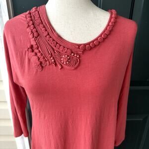 Garnet Hill Sz M Terracotta Dress w/ Embellished Neckline and Asymmetrical Hem
