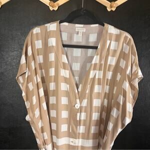 Stylish midi dress with a checkered pattern. Features a button-down front and a tie waist. Perfect for casual outings.