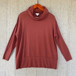 Garnet Hill Terra Cotta Cowl Neck Knit French Terry Long Sleeve Tunic Top Size M