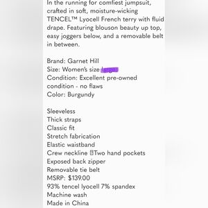 Garnet Hill Terry Knit Jogger Jumpsuit With Pockets Size Medium