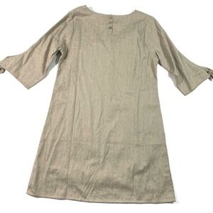 Garnet Hill Tie Sleeve Dobby Shift Dress Beige Textured Size 10