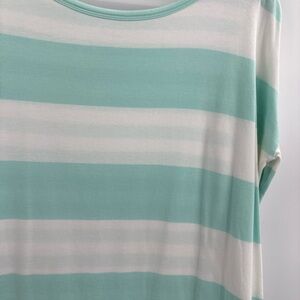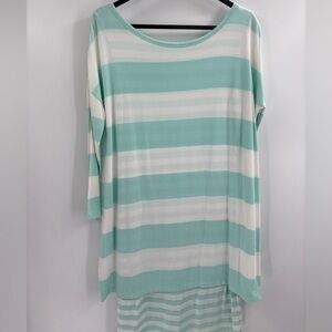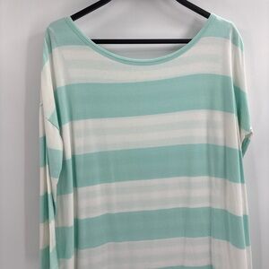 Garnet Hill Top Women’s Aqua Blue Stripe Layered Scoop Neck Beachy Boho size xs