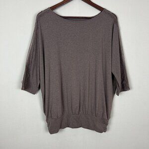 Garnet Hill Top Womens Large Taupe Dolman Lace Sleeve Organic Cotton Tencel L