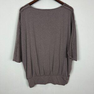 Garnet Hill Top Women's Large Taupe Dolman Lace Sleeve Organic Cotton Tencel L