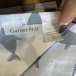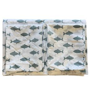 Garnet Hill Twin Flat Sheet & 2 Pillowcases Mini-Print Percale Blue Fish Set EUC