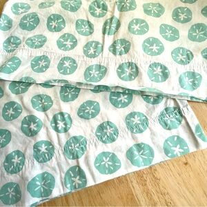 Garnet Hill Two (2) Standard Pillow Cases Aqua Color Sand Dollars 100% Cotton