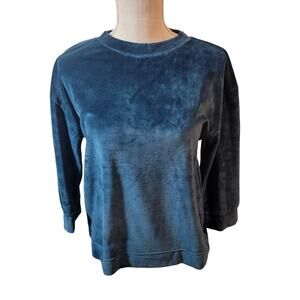 Garnet Hill Velour Pullover Sweatshirt Teal Blue Size XS