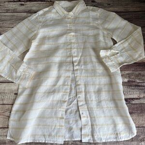 Garnet Hill Women’s Easy 100% Linen Button Down Shirt Tunic Striped Petite PP