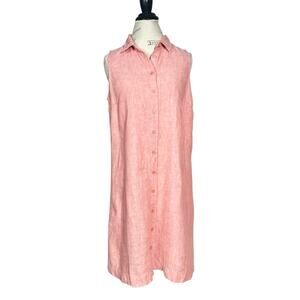 Garnet Hill | Women | Poppy Rose Chambray Classic Linen Shirt Dress | Size 10