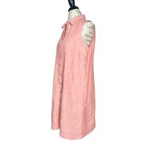 Pre-loved women’s Garnet Hill poppy rose chambray classic linen shirt dress. Features bust darting, full button placket, and shirt collar.