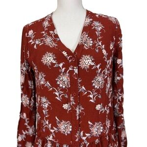 Garnet Hill Women’s 6 Floral Drop Waist Lined Dress Buttons Fall Colors Rust.