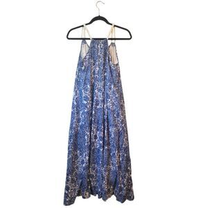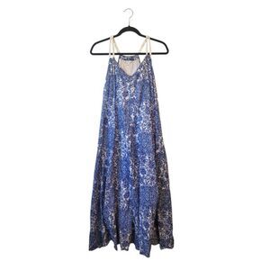 Garnet Hill Women's A Line Blue And White Floral Maxi Dress Size PL