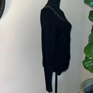 Garnet Hill Women’s Black Silk Cashmere Blend Sequin Collar Cardigan Large