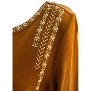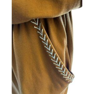 Garnet Hill Women's Brown White Embroidered Pocket-Detail Knit Dress Size Small French Terry