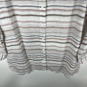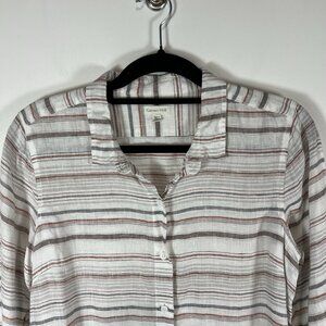 Garnet Hill Womens Button Front Tunic Top Size S 100% Linen Stripe Summer Beach
