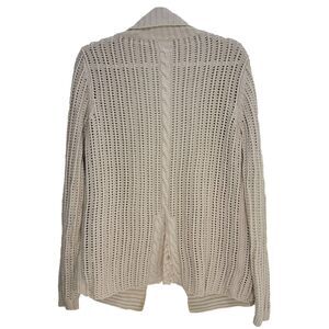 Garnet Hill Women’s Cardigan Sweater Cream Beige Open Long Sleeve Knit Lace S