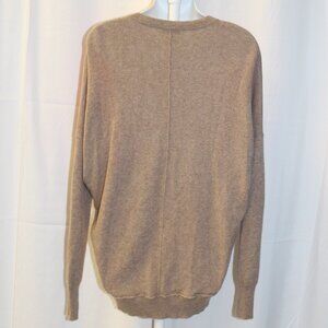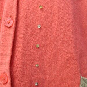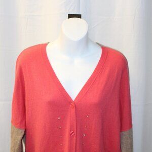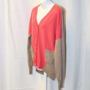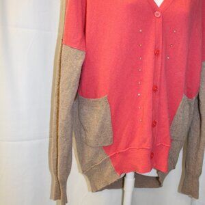 Garnet Hill Women’s Colorblock Cashmere Cardigan Size Medium Coral Pink and tan
