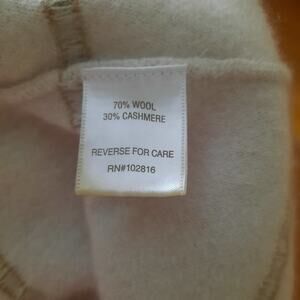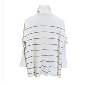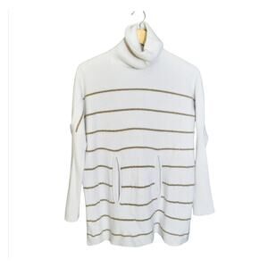 Garnet Hill Womens Cream with Brown Stripe Oversized Turtleneck Sweater With Kangaroo Pouch, Long Sleeves with Exaggerated Ribbed Cuffs, Wool and Cashmere Blend Size L, Please See Measurements For Best Fit, Really Nice Condition!