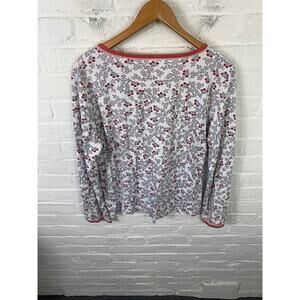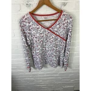 Garnet Hill Women's Floral Pajama Top Cotton Gray Green White Size Medium