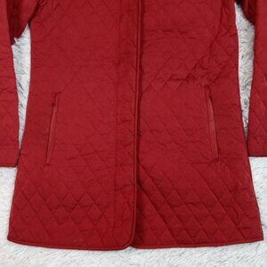 Garnet Hill Womens Jacket Red 6 Soft Quilted Long Coat Pockets Comfort Cozy