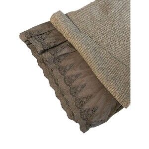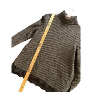 Garnet Hill Womens M Gray Wool Turtle Neck Pullover Side Buttons Lace Trim