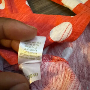 Garnet Hill Womens Polka-dot Pocket T-Shirt Size Small Orange Long Sleeve Cotton