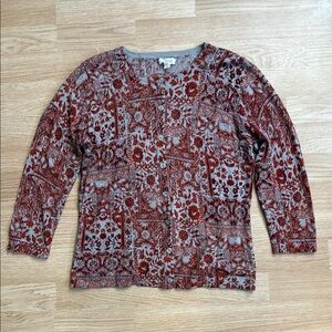 Garnet Hill Women's Red Orange & Gray Patterned Cardigan