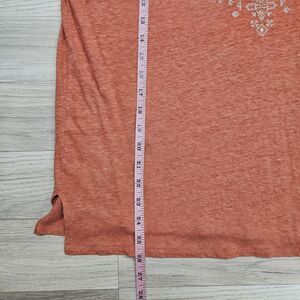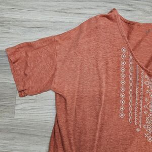 Garnet Hill Womens Shirt Orange Tribal Organic Linen V-neck Short Sleeve Medium