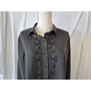Garnet Hill Womens Silk Linen Gray Embroidered Shirt Dress Small