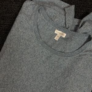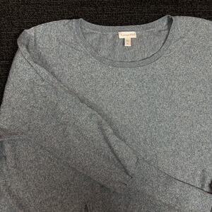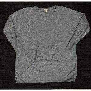 Garnet Hill Womens Sweater Organic Cotton Blue Heathered Kangaroo Pocket Size XL