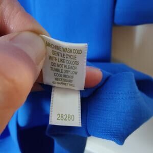 Garnet Hill women's size 8 royal blue sheath dress with long sleeves. Pintuck pleats on the skirt for a touch of volume. Style 28280.