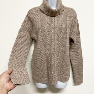 Garnet Hill Womens Tan Recycled Cashmere Cozy Cable Knit Turtleneck Size M