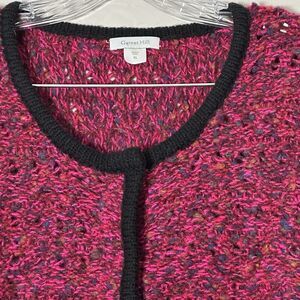 Garnet Hill Womens XL Pink Mohair Wool Blend Knit Snap Front Cardigan Sweater