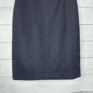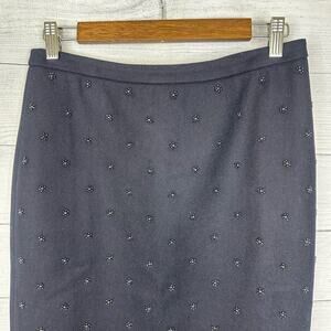 Garnet Hill Womens size 4 Small Wool Blend Beaded Pencil Skirt Navy Blue