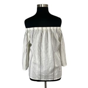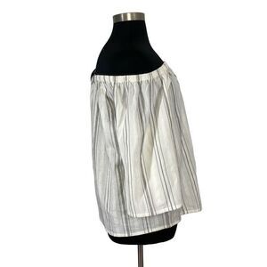 Garnet Hill XL White Striped Top Drop Shoulder Peasant Blouse Cottagecore