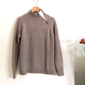 Garnet Hill Zip-Detail 100% Cashmere T-Neck sweater in Light Camel & White Size M