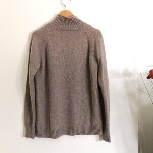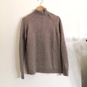 Garnet Hill Zip-Detail 100% Cashmere T-Neck sweater in Light Camel & White Sz M